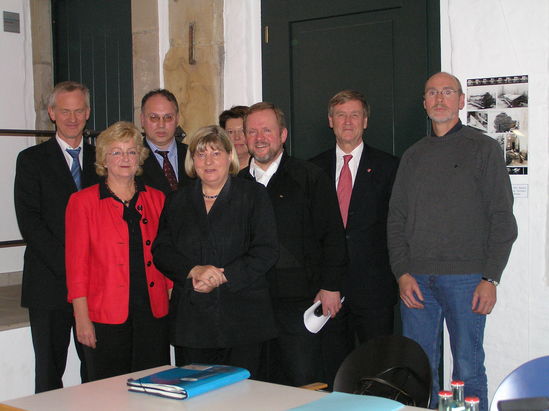 Im Gespräch über die Lage der hausärztlichen Versorgung im Kreisgebiet: Alexander Drechsel (DAK Minden), Landtagsabgeordnete Inge Howe (SPD), Jürgen Sundermann (DAK Regionalzentrum Bielefeld), die Bundesbeauftragte für Patienten Helga Kühn-Mengel (SPD), Beate Kaiser (AOK Minden), Dr. Erik Fischer (Kassenärztliche Vereinigung Westfalen-Lippe), Bundestagsabgeordneter Lothar Ibrügger (SPD), und der in Minden niedergelassen Allgemeinmediziner Dr. Bendix Jebsen.