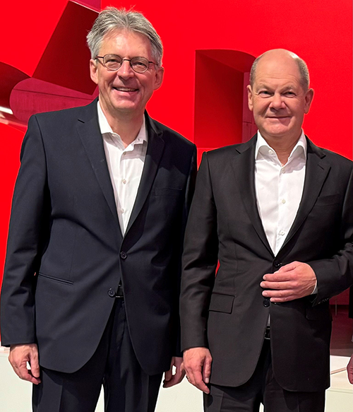 Nach der Wahl von Achim Post zum neuen SPD-Vize ließ es sich Olaf Scholz nicht nehmen, dem heimischen Bundestagsabgeordneten herzlich zu gratulieren. Achim Post gehört nunmehr zum engsten SPD-Führungskreis in Fraktion und Partei.