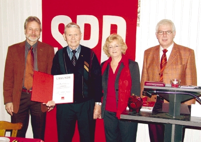 Holzhauer trat 1948 im Alter von 27-Jahren in die SD ein. Der Ortsvereins-Vorsitzende Heinz-Günther Kelle, die SPD-Landtagsabgeordnete Inge Howe und der Häverstädter SPD-Stadtverordnete Bernd Volz gratulierten Holzhauer zu seiner 60-jährigen Parteimitgliedschaft.